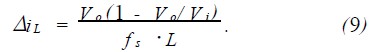 ΔiL為線圈上紋波電流的絕對(duì)值。將式(5)和式(6)代入式(7),整理得: