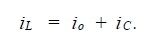 注意到在輸出部分,電感電流在電容C和負(fù)載之間分割,有: