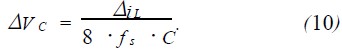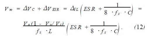ΔVESR也會(huì)作為紋波的一部分表現(xiàn)在輸出端上,所以總的紋波表達(dá)式為式(10)和式(11)的和,即: