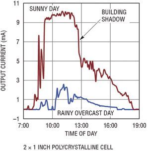 用光伏電池可產(chǎn)生多少功率取決于多種因素。電池的輸出功率與投射到電池上的光強度、電池的總面積以及電池的效率成正比。大多數(shù)光伏電池都規(guī)定在完全直射的太陽光 (1000W/m2) 下使用,但是在大多數(shù)應用中,不可能有這么理想的條件。就依靠太陽光工作的設備來說,可從電池獲得的峰值功率可能非常容易變化,由于天氣、季節(jié)、煙霧、灰塵和太陽光入射角的變化,今天與明天相比有可能相差10倍。在充足的太陽光照下,晶體電池視電池特性的不同而有所不同,典型輸出功率約為每平方英寸40mW。面積為幾平方英寸的光伏電池足夠給多個遠程傳感器供電以及給電池涓流充電了。