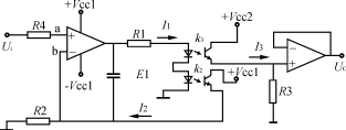 反之,當(dāng)輸入電壓Ui降低時(shí),運(yùn)放輸出端電壓降低,通過發(fā)光二極管的電流I1也隨之減小,與上類似,輸出電壓UO=R2I2也隨輸入電壓Ui的降低成比例地減小。