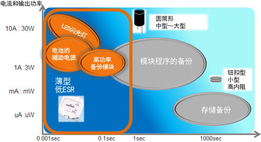 - 內(nèi)阻僅為數(shù)mΩ的低ESR (等效串聯(lián)電阻) 蓄電裝置
