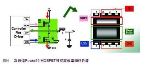 [page]1.帶驅(qū)動器和MOSFET的分立式解決方案現(xiàn)在仍在普遍使用。為滿足所有設(shè)計要求,現(xiàn)在飛兆半導(dǎo)體提供的采用小尺寸熱性能增強型MLP(QFN)封裝的產(chǎn)品,可獲得高系統(tǒng)性能。MOSFET實現(xiàn)了首先采用MLP封裝(見圖3所示)。其Power56和Power33產(chǎn)品系列采用最新的PowerTrench技術(shù),能夠同時提供超低RDSon和低Qg,從而適用于高開關(guān)頻率應(yīng)用。鍵合技術(shù)可減小封裝的電感,提高封裝有限的ID,適用于大電流應(yīng)用。其低端FET產(chǎn)品組合采用SyncFET集成了肖特基二極管,在實現(xiàn)高開關(guān)性能的同時降低了熱耗。