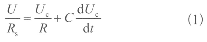 當(dāng)模塊正常工作時(shí),DC/DC開關(guān)電源可以等效為電壓源,其輸出等效電路圖和簡化后的等效電路圖分別如圖1和圖2所示。其中,U是輸出電壓,RS是等效內(nèi)阻,RL是輸出負(fù)載電阻,C是輸出電容,