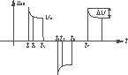2)t2-t3時(shí)段 uAB="Uo",D12反偏截止。D1與D4導(dǎo)通,忽略D1與D4上的壓降,UEF=Uo。以E為電壓參考點(diǎn),UF比UE電位低Uo,記作-Uo;由于UC=UEG=Uo+ΔUo,則UG比UE低Uo+ΔU,記作-(Uo+ΔU);這樣UFG=UF-UG=ΔU。