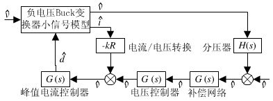 圖8為電流連續(xù)模式下峰值電流控制(CCMCPM)型非隔離負(fù)電壓Buck開關(guān)電源的系統(tǒng)框圖??刂骗h(huán)路包括了電流內(nèi)環(huán)和電壓外環(huán)兩個部分。補償網(wǎng)絡(luò)屬于電壓外環(huán),因此設(shè)計補償網(wǎng)絡(luò)需要先建立包含電流控制內(nèi)環(huán)的小信號模型。