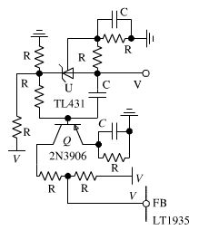 反饋控制回路采用了峰值電流控制。相比傳統(tǒng)的電壓控制,峰值電流控制一方面能很好的改善電源的動態(tài)響應(yīng),另一方面還能實現(xiàn)快速的過電流保護,很大程度上提高了系統(tǒng)的可靠性。由于采用了電源控制器LT1935,其內(nèi)部集成了峰值電路控制電路和斜坡補償電路,非隔離負(fù)電壓DC/DC開關(guān)電源反饋回路設(shè)計即轉(zhuǎn)換為補償網(wǎng)絡(luò)設(shè)計,進(jìn)而大大簡化了反饋回路的設(shè)計。