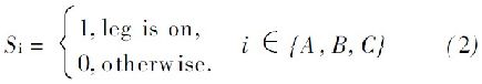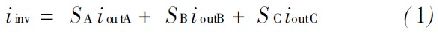 式中, SA , S B 和SC 是交換功能的交換機(jī)頂端的三個(gè)逆變器的開(kāi)關(guān), 如下: