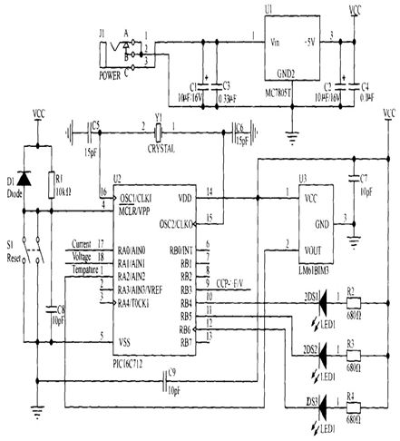 因此,設(shè)計(jì)良好的充電器應(yīng)具有溫度檢測(cè)功能并能夠根據(jù)不同的環(huán)境溫度調(diào)整充電過(guò)程中的各轉(zhuǎn)換電壓值;同時(shí),充電器還應(yīng)具備溫度保護(hù)功能,在充電過(guò)程中,當(dāng)蓄電池溫度超出限定的溫度范圍時(shí)充電器應(yīng)立即停止充電或進(jìn)入涓流充電,并且PIC16C712應(yīng)點(diǎn)亮故障指示燈以提示用戶出現(xiàn)何種異常。