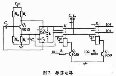 采用LC振蕩器的振蕩原理,LC振蕩器選擇L或是C參數(shù)為固定值。通過LC的組合,振蕩器起振,當測量電容時電感固定,測量電感時電容固定。通過LC振蕩器的頻率計算公式