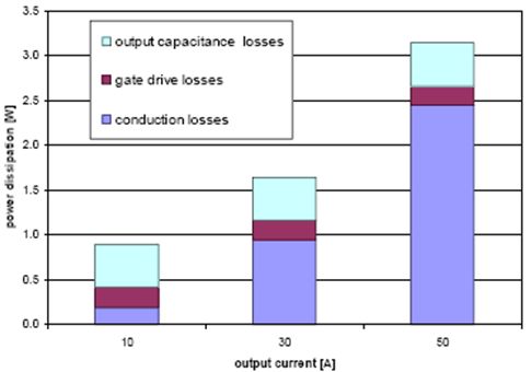 圖6. 不同輸出電流條件下的功耗分布(IPP028N08N3 G;fsw = 125 kHz、UT = 40 V)[page]