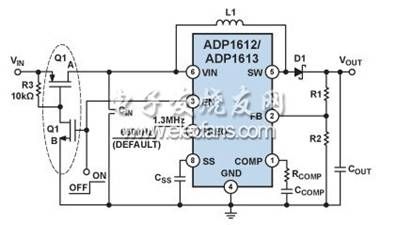 升壓轉換器使用電壓或電流反饋來調節(jié)選定的輸出電壓;控制環(huán)路則可根據(jù)負載變化保持輸出調節(jié)。低功耗升壓轉換器的工作頻率范圍一般是600 kHz到2 MHz.開關頻率較高時,所用的電感可以更小,但開關頻率每增加一倍,效率就會降低大約2%.在ADP1612 和ADP1613升壓轉換器(參見附錄)中,開關頻率可通過引腳選擇,最高效率下的工作頻率為650 kHz,最小外部器件的工作頻率為1.3 MHz.對于650 kHz的工作頻率,將FREQ 連接至GND,而1.3 MHz的工作頻率則連接至VIN.