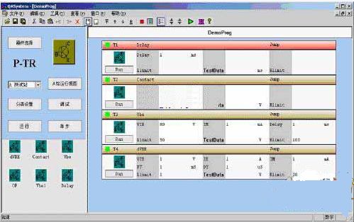 2、編輯模塊,用于器件選擇、分類(lèi)設(shè)置、調(diào)試、建立測(cè)試程序,初始測(cè)試程序的界面如圖3所示: