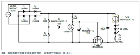 經(jīng)濟而耐用的簡單混合式電路可用于建筑與室內(nèi)照明用具。這些電路設(shè)計的效率可能低于復(fù)雜的開關(guān)穩(wěn)壓器,但它們有低成本和簡單的優(yōu)勢,因此具有吸引力。這些電路可用于50Hz或60Hz的85V~265V所有交流電壓。