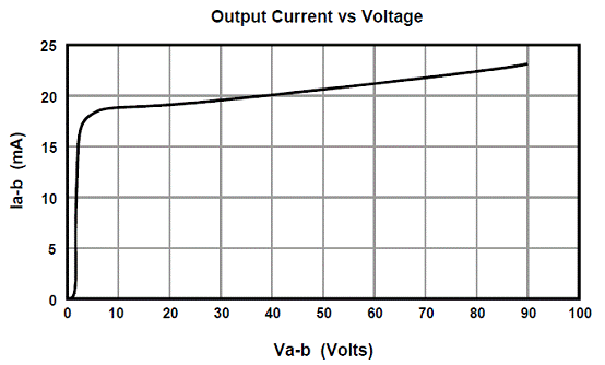 它在某一個(gè)電壓范圍內(nèi)有一段恒流區(qū)間,在這個(gè)區(qū)間,流經(jīng)的電流幾乎不變,VL為到達(dá)IL的電壓值,IL大約為0.8Ip,Vb為擊穿電壓值。但是實(shí)際的恒流二極管并不是那么理想。圖3是美國(guó)Supertex的CL1恒流二極管的特性。它的電流仍然會(huì)隨電壓而有所增加。