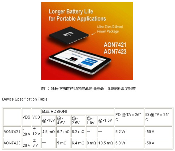 新的產(chǎn)品上應(yīng)用了AOS的AlphaMOS專利技術(shù)。這些技術(shù)的好處在于它可以延長電池的使用壽命,還可以使設(shè)計變的更簡單緊湊,適用于便攜式產(chǎn)品,例如:平板電腦、智能手機(jī),電子書、筆記本電腦、數(shù)碼相機(jī)及便攜式音樂播放器。