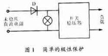 直流開關(guān)穩(wěn)壓器的輸入一般都是未穩(wěn)壓直流電源。由于操作失誤或者意外情況會(huì)將其極性接錯(cuò),將損壞開關(guān)穩(wěn)壓電源。極性保護(hù)的目的,就是使開關(guān)穩(wěn)壓器僅當(dāng)以正確的極性接上未穩(wěn)壓直流電源時(shí)才能工作。利用單向?qū)ǖ钠骷梢詫?shí)現(xiàn)電源的極性保護(hù)。最簡單的極性保護(hù)電路如圖1所示。由于二極管D要流過開關(guān)穩(wěn)壓器的輸入總電流,因此這種電路應(yīng)用在小功率的開關(guān)穩(wěn)壓器上比較合適。在較大功率的場合,則把極性保護(hù)電路作為程序保護(hù)中的一個(gè)環(huán)節(jié),可以省去極性保護(hù)所需的大功率二極管,功耗也將減小。