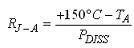 我們需要的是代表實(shí)際電路的準(zhǔn)確RJ-A。測量RJ-A有多種方法,一種方法是使用熱關(guān)機(jī)閾值,將其設(shè)置為+150℃。要用這種方法測量RJ-A,我們可以讓LM3554在已知功耗(PDISS)下工作,然后慢慢提高環(huán)境溫度直到器件關(guān)機(jī)為止。該器件具有一個(gè)內(nèi)部標(biāo)志,可以通過I2C兼容接口設(shè)置,在觸及熱關(guān)機(jī)閾值時(shí)會(huì)返回‘1’。使用這種方法獲得的RJ-A將為: