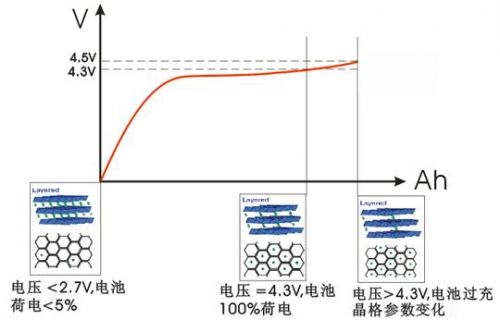 圖1 錳酸鋰電池鋰離子脫嵌與充電曲線對(duì)應(yīng)關(guān)系