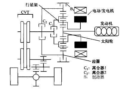 汽車動力傳動系統(tǒng)采用傳統(tǒng)的內(nèi)燃機和電動機作為動力能源,通過混合使用熱能和電能兩套系統(tǒng)開動汽車。在低速小功率運行時可以關(guān)閉發(fā)動機,采用電動機驅(qū)動;而高速行駛時用內(nèi)燃機驅(qū)動;通過發(fā)動機和電動機的協(xié)同工作模式,將車輛在制動時產(chǎn)生的能量轉(zhuǎn)化為電能,并積蓄起來成為新的驅(qū)動力量.從而在不同工況下都能達到高效率。一般上有串聯(lián)式、并聯(lián)式、混聯(lián)式和復(fù)合式4種布置形式。