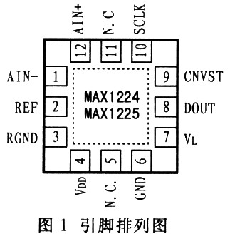 MAXl224/MAXl225采用小巧的12引腳TQFN封裝,其引腳排列如圖1所示。各個(gè)引腳的功能如表l所示。