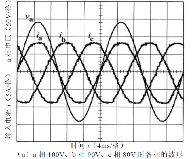 ③單位功率因數(shù)控制方法在輸入電壓不對(duì)稱時(shí)輸入電流會(huì)發(fā)生相移,實(shí)現(xiàn)不了單位功率因數(shù)。