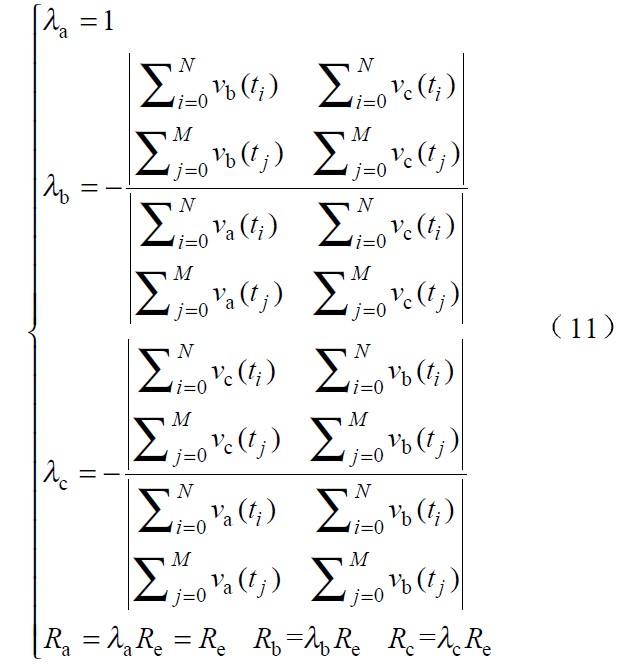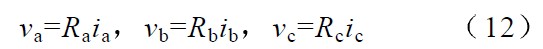 式 (11 )為相電壓不對(duì)稱系數(shù)的計(jì)算公式,其中λa ,λb 和λc 為相電壓不對(duì)稱系數(shù),Re 為標(biāo)準(zhǔn)等效電阻??梢?,當(dāng)電網(wǎng)電壓不對(duì)稱時(shí),為使各相電流仍能正確跟蹤對(duì)應(yīng)相電壓,各相等效電阻值是不同的。特殊地,如果三相電壓對(duì)稱,λa=λb=λc =1 ,則Ra=Rb=Rc=Re.