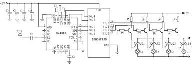 Si4313 的RX 端口經(jīng)電容C1與天線(xiàn)相連, 接收遙控調(diào)制載波信號(hào)。Si4313 與單片機(jī)之間的通信是通過(guò)SPI 總線(xiàn)實(shí)現(xiàn),SPI 總線(xiàn)讀寫(xiě)操作由以下幾部分組成:讀寫(xiě)標(biāo)志(1 bit),地址(7 bits)和數(shù)據(jù)(8 bits)。讀寫(xiě)標(biāo)志位指示當(dāng)前操作是讀還是寫(xiě);7 位地址指示操作對(duì)象, 可尋址128 個(gè)8 位控制寄存器中的任意一個(gè); 數(shù)據(jù)域包含寫(xiě)入或讀出的Si4313 內(nèi)部寄存器的內(nèi)容。Si4313 的SCLK、SDI、SDO、nSEL、nIRQ 端口分別與單片機(jī)的P0.0~P0.4 端口相連。SCLK 為時(shí)鐘接口;SDI為串行數(shù)據(jù)寫(xiě)入端口, 由單片機(jī)對(duì)Si4313 進(jìn)行數(shù)據(jù)寫(xiě)入;SDO 為串行數(shù)據(jù)輸出端口,解調(diào)后數(shù)字信號(hào)由此端口輸出至單片機(jī)。單片機(jī)P1.0~P1.3 為控制端口,與開(kāi)關(guān)電路相連。