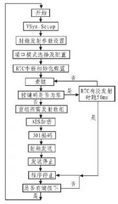 無(wú)線(xiàn)電發(fā)射系統(tǒng)的軟件設(shè)計(jì)主要通過(guò)C2 接口編程實(shí)現(xiàn)Si4010 內(nèi)部集成的8051MCU 對(duì)無(wú)線(xiàn)發(fā)射電路的狀態(tài)進(jìn)行控制。包括芯片初始化程序,鍵盤(pán)掃描及讀取程序,射頻參數(shù)設(shè)置程序,無(wú)線(xiàn)發(fā)射程序等。發(fā)射系統(tǒng)軟件流程如圖4 所示。