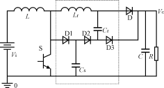 這種新型無源軟開關(guān)變換器在Boost基本拓?fù)浠A(chǔ)上附加了一個(gè)子電路,如圖1虛框中所示。