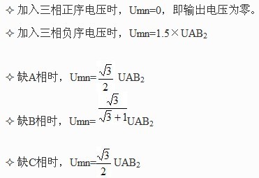 根據(jù)上述向量圖,分析發(fā)生各類電壓接線異常情況時的mn間的電壓幅值,可得出以下結(jié)論: