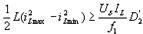 為求出Lf1的確切值,必須對上述約束關(guān)系中的各個參數(shù)進行代換。這里取平均值Uδ=25V;D′1=1-D1,在0~1之間變化,故取D′1max≈1;,取ΔI=0.02IL=0.02×20=0.4A;D′2=1-D2,由于在實際應(yīng)用中,一般要求消電離時間≥脈沖寬度,故取0.5≤D2<1,即0<D′2≤0.5,這里取D′2max=0.5。將上述各參數(shù)代入約束關(guān)系可得式(8)