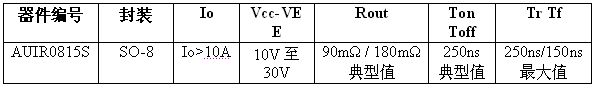 全球功率半導體和管理方案領導廠商國際整流器公司 (International Rectifier,簡稱IR) 近日推出車用IC ── AUIR0815S,具備超過10 A 的高輸出電流,能夠驅動逆變器級的大型 IGBT 和 MOSFET,適用于混合動力汽車和電動汽車中的動力系統(tǒng)。