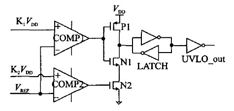 圖2 兩個比較器實現(xiàn)的欠壓鎖定電路
