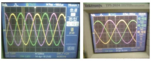 光伏并網(wǎng)發(fā)電系統(tǒng)要實(shí)現(xiàn)并網(wǎng),必須使逆變輸出與電網(wǎng)電壓的幅度、相位與頻率達(dá)到一致,否則將會(huì)使電網(wǎng)諧波增加、電能質(zhì)量下降,并產(chǎn)生并網(wǎng)環(huán)流,甚至造成光伏發(fā)電系統(tǒng)的損壞。因此在并網(wǎng)過(guò)程中必須進(jìn)行同步鎖相控制、輸出電壓幅度控制以滿足并網(wǎng)的要求。根據(jù)IEEEStd1547-2003規(guī)定最大相位誤差為20度,瞬時(shí)電壓誤差不能超過(guò)電網(wǎng)電壓的10%、最大頻率誤差不能超過(guò)0.3Hz。圖5為獨(dú)立工作模式時(shí)純電阻負(fù)載兩端的電壓波形。