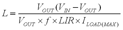 其中,VIN為輸入電壓,VOUT為輸出電壓,f為轉(zhuǎn)換器的開關(guān)頻率,LIR為電感紋波電流與設(shè)計的最大負載電流之比,ILOAD(MAX)為最大負載電流。