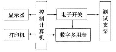 電子開關控制測試支架上的210 個引腳的中斷或連通, 以便于每次只測試一個引腳的輸出信號。