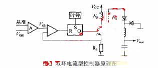 電流型脈寬調(diào)制(PWM)控制器是在普通電壓反饋PWM 控制環(huán)內(nèi)部增加了電流反饋的控制環(huán)節(jié),因而除了包含電壓型PWM 控制器的功能外,還能檢測(cè)開(kāi)關(guān)電流或電感電流,實(shí)現(xiàn)電壓電流的雙環(huán)控制??刂圃砜驁D如下圖(圖1)所示。