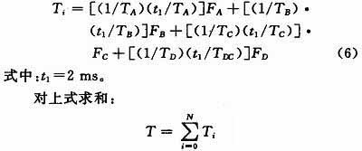 式中:i表示定時計數(shù)器的中斷個數(shù);Ti為一次中斷得到的時間總和,當(dāng)時間累加和大于等于1時,說明事件應(yīng)該得到處理,處理發(fā)生在當(dāng)前事件所在區(qū)域內(nèi)。但從該式可以看出,并沒有反映電流過載熱效應(yīng)積累與長延時過載電流和短延時過載電流在處理方法上的不同,無論是在20 min的跳閘還是10 s的跳閘都是在規(guī)定時間內(nèi)完成跳閘保護(hù)。為此,仍需要對上次進(jìn)行改進(jìn),為了能過反映,熱積累效應(yīng)采用反時限方法,即過載電流越大,跳閘時間越短。為了達(dá)到如此效果,將不同的電流過載下跳閘時間進(jìn)行細(xì)分,在1.2In~1.5In過載段內(nèi),將跳閘時間20 min劃分為20,19,18,…,1,同樣將對過載電流段劃分出20等分分別對應(yīng)各自的時間,同樣的方法應(yīng)用到其他電流過載段內(nèi),劃分的越密集,熱累計效果越快,跳閘時間越短。這就解決了在短延時電流過載時跳閘過慢的現(xiàn)象。于是公式變?yōu)椋?br /> 式(6)中的(t1/TA)由(t1/TA1)A1+(t1/TA2)A2+…,(t1/TA20)A20替換。式中:TA1,TA2,…,TA20代表等分時間;A1,A2,…,A20代表實(shí)際電流范圍狀態(tài)位,為1執(zhí)行相應(yīng)的加法運(yùn)算。同樣的B,C,D的轉(zhuǎn)化采用同樣的形式。