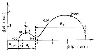 2) 高頻電阻RHF,即超過100Hz后的實(shí)部;