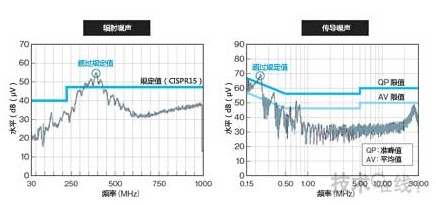 EMC規(guī)定中定義了輻射噪聲和傳導(dǎo)噪聲兩種電磁噪聲的測量,LED燈泡也不例外。有的LED燈泡產(chǎn)品的噪聲超過了CISPR15的規(guī)定值(準(zhǔn)峰值:QP和平均值:AV)。