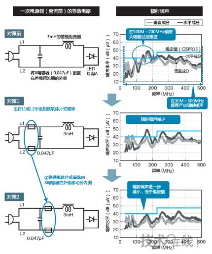 圖10:LED燈泡的傳導(dǎo)噪聲對策示例