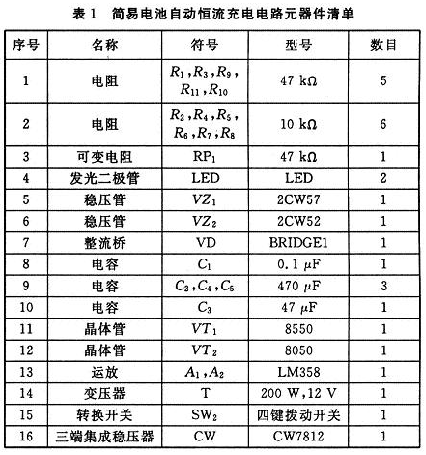 2 簡(jiǎn)易充電器總電路原理圖及元器件清單