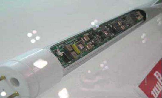日本村田制作所展示過無需電解電容器的LED照明用電源,該驅(qū)動(dòng)電源是面向Clear Sodick開發(fā)的電源模塊,其輸入輸出電容器采用了該公司的多層陶瓷電容(MLCC),可內(nèi)置于直管型LED照明器具的管內(nèi)。與采用鋁電解電容器時(shí)相比,除了可縮小產(chǎn)品尺寸外,還能延長(zhǎng)產(chǎn)品壽命。為了獲得恒定電流,采用了DSP微控制器,開關(guān)頻率約為200kHz。輸出電容器采用了兩個(gè)約5μF的MLCC。輸入電壓支持AC100V以及200V兩種。