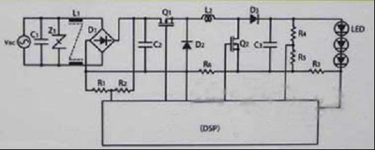 為了使LED照明獲得恒定電流,采用了DSP微控制器。開關(guān)頻率約為200kHz。輸出電容器采用了兩個(gè)約5μF的MLCC。“一般情況下,該容量的 MLCC無法完全吸收脈動(dòng)電流,不過通過改進(jìn)DSP側(cè)的控制,不會(huì)感覺到照明器具的閃爍”(村田制作所)。主電路采用非絕緣升降壓型,沒有設(shè)置PFC(功 率因數(shù)改善)電路。外形尺寸為180mm×19.4mm×6.5mm。
