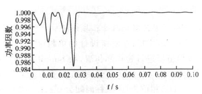 PWM 整流器功率因數(shù)波形如圖9所示。由圖9可知,電路功率因數(shù)始終大于0.985,且工作0.03s后功率因數(shù)能達(dá)到1.