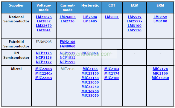 電壓模式控制的最新產(chǎn)品示例包括美國國家半導(dǎo)體制造的LM2267x Simple Switcher® 系列以及 Micrel 制造的 MIC472x和 MIC468x 系列。 這些部件包括內(nèi)部補(bǔ)償,因此可在各種應(yīng)用中方便地使用它們。