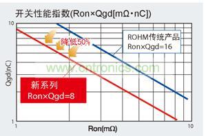 進(jìn)一步微細(xì)化,同時(shí),采用羅姆獨(dú)家的低容量構(gòu)造和新的“溝槽式場(chǎng)板結(jié)構(gòu)”,實(shí)現(xiàn)了低容量與低導(dǎo)通電阻兼?zhèn)涞脑?。與羅姆傳統(tǒng)產(chǎn)品相比,表示功率MOSFET的性能指數(shù)的“FOM”數(shù)值可降低50%。