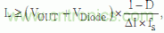 其中,D(占空比)=5 V/48 V=0.104,且△I = 0.5 A峰至峰。
