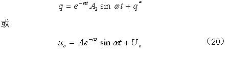 前面已經(jīng)指出,齊次微分方程(12)式僅表示電容Cs充滿電后,輸入電壓等于0時,電容兩端電壓或存儲電荷隨時間變化的過程,即,當(dāng)t = 0時,q從最大值開始隨時間變化的過程。但齊次微分方程(12)式并不完全表示電容Cs充、放電的全過程,我們仔細觀察(17)式便知:在LC電路中,當(dāng)t = 0時,如果q為最大值,電容一定是按余弦規(guī)律放電;如果q為最小值,則電容一定是按正弦規(guī)律充電。因此,我們還需要根據(jù)初始條件來對(10)非齊次微分方程式進一步求解。
